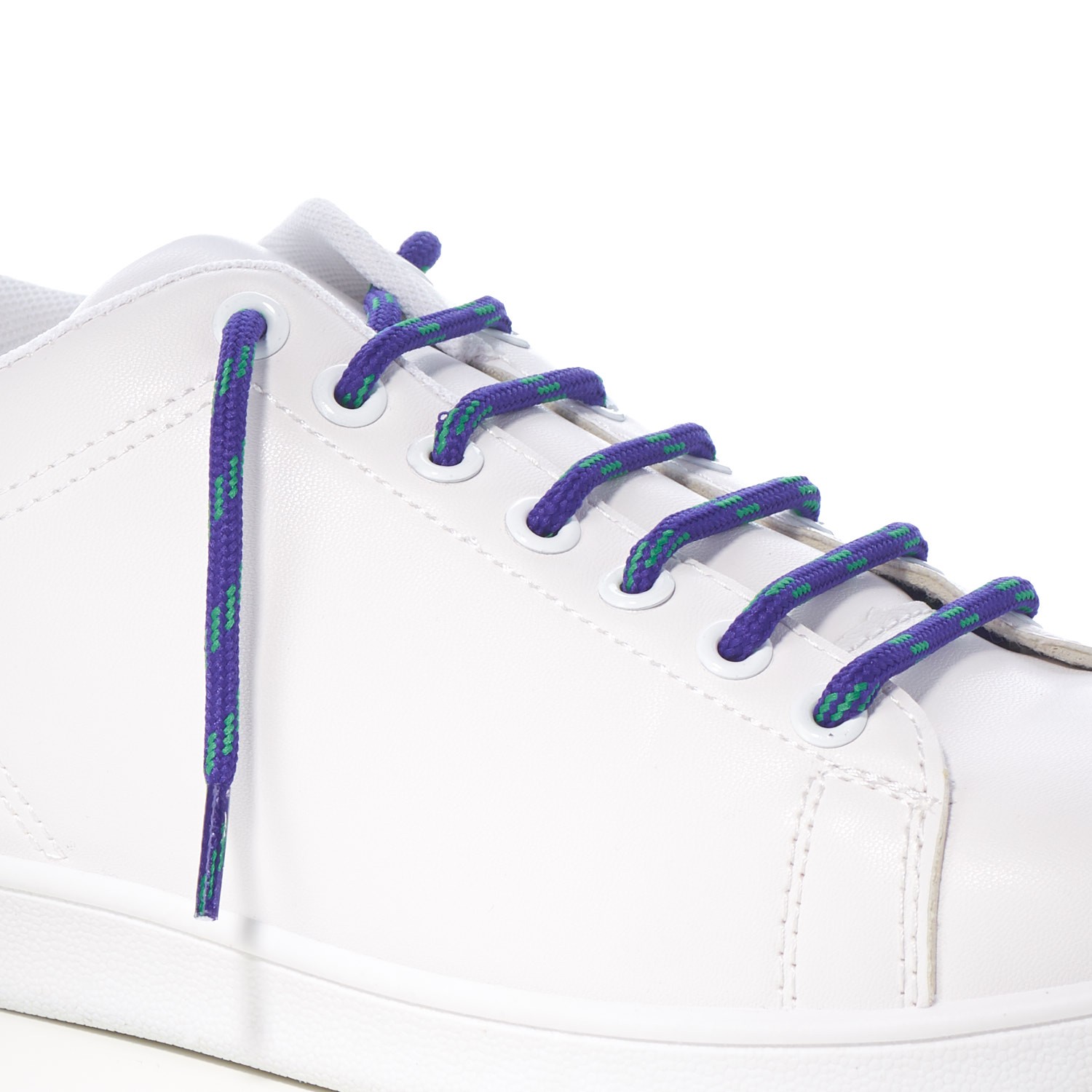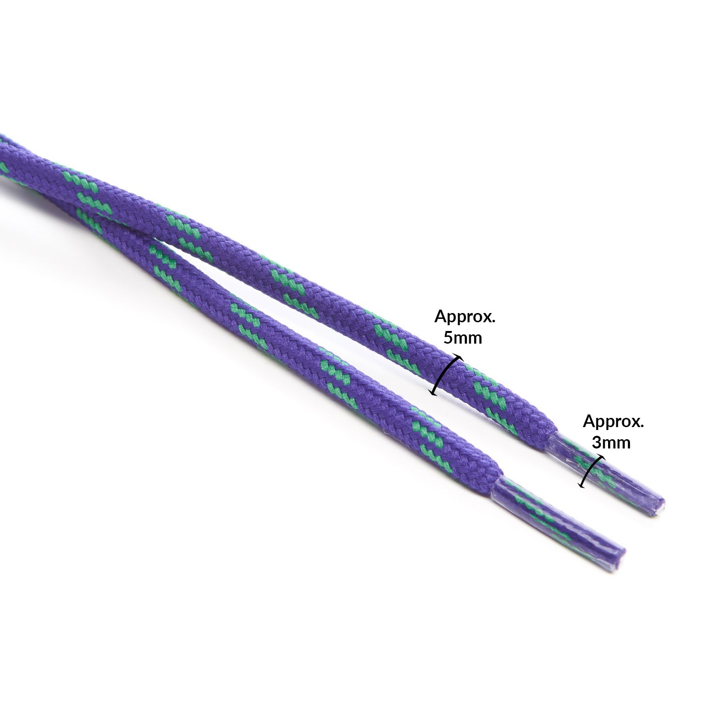 Purple with Emerald Green 4 Fleck 5mm Round Cord Shoe Laces for kids and adults footwear, boots and trainers.