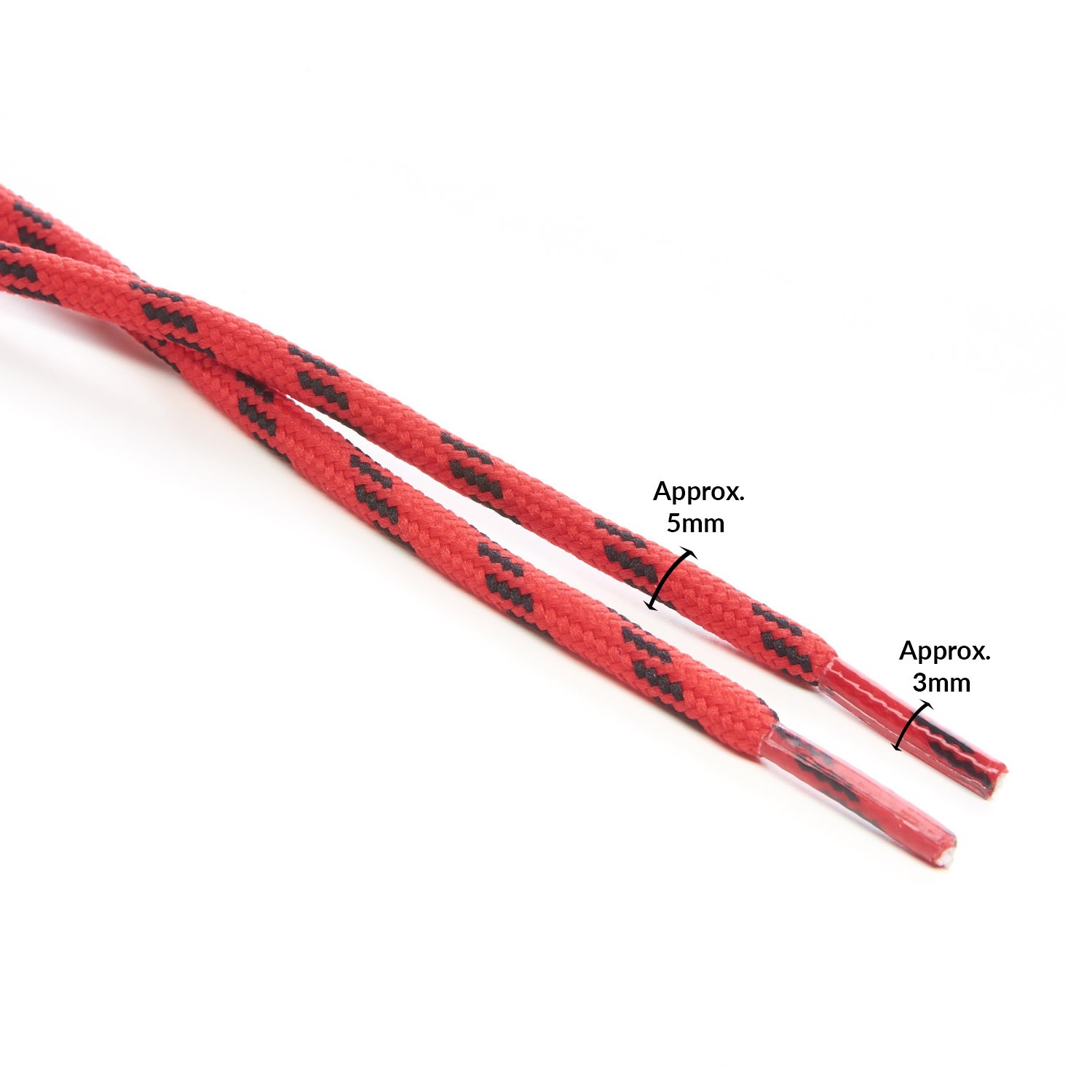 Red with Black 4 Fleck 5mm Round Cord Shoe Laces for kids and adults footwear, boots and trainers.