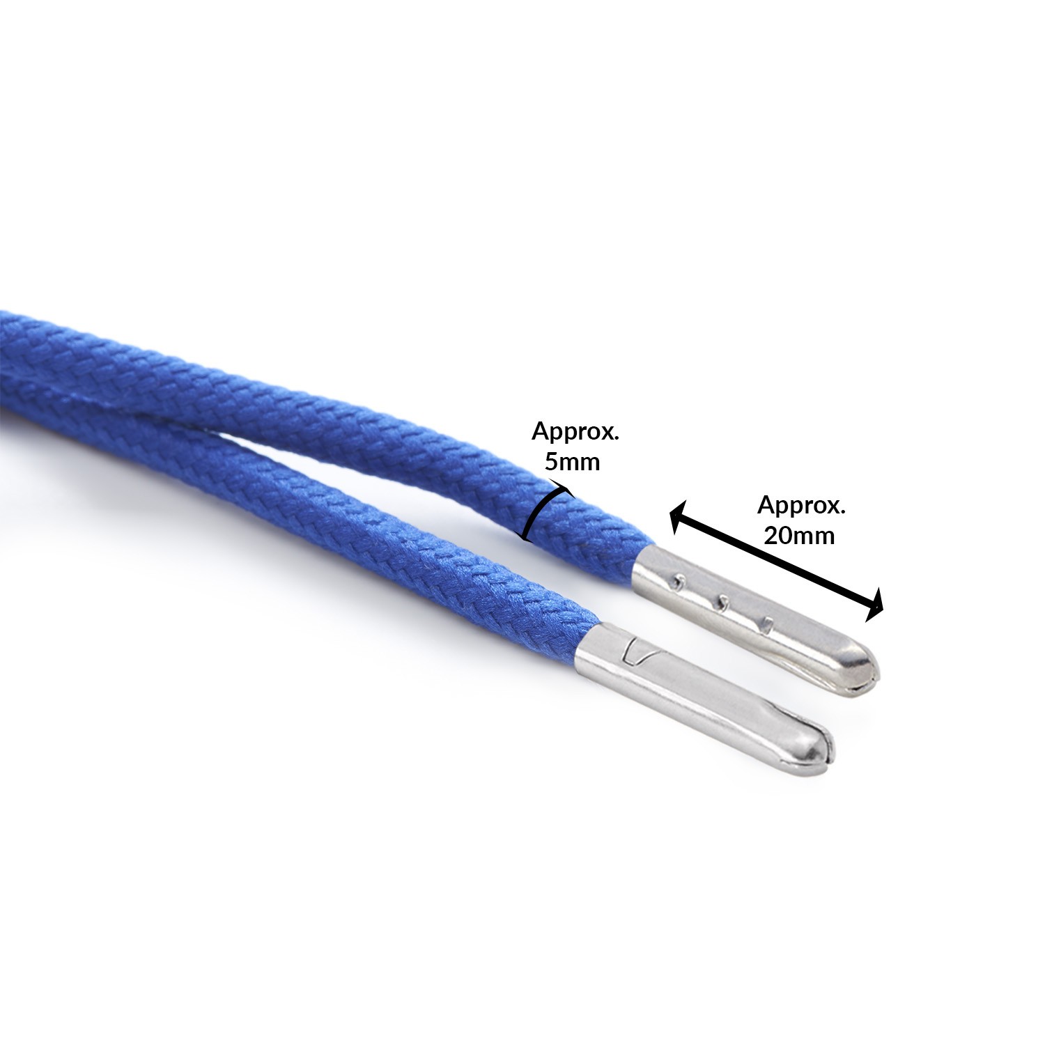 Royal Blue Round Cord Shoe Laces Silver Metal Tips for kids and adults footwear, boots trainers, and sneakers.